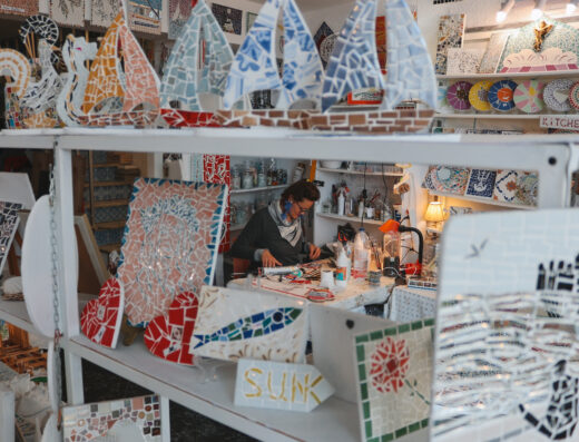 Localizada em Olhão, no coração do Algarve, a boutique nasceu com a missão de valorizar a herança cultural dos mosaicos e azulejos portugueses, reinventando-os em peças únicas e em experiências artísticas abertas a todos. Além de expor e vender mosaicos criados à mão, o espaço acolhe workshops onde visitantes podem mergulhar no processo criativo e levar consigo não apenas uma peça, mas também uma memória.