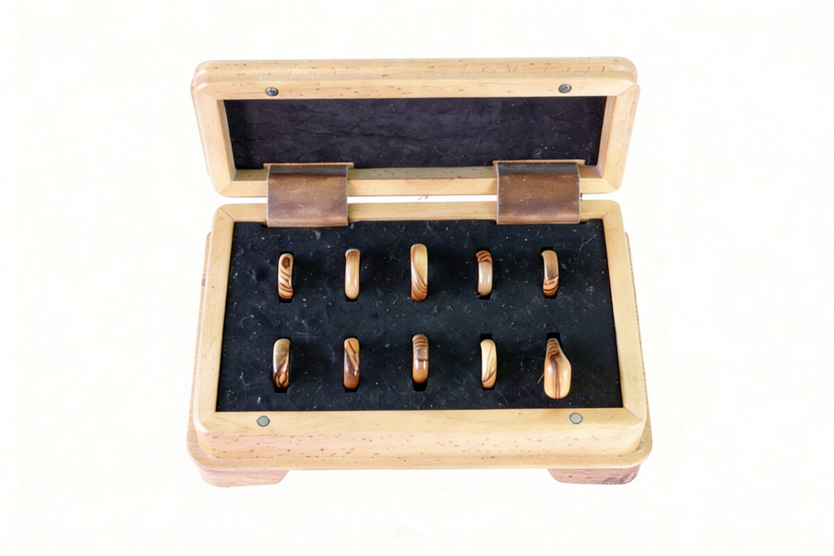 Anéis em madeira feitos à mão, delicados e originais.
