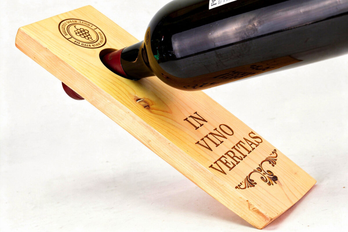 Tábua artesanal em madeira, prática e decorativa para servir garrafas com estilo.