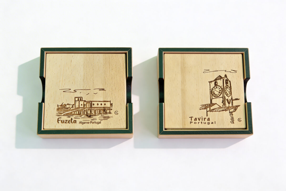 Bases de copos em madeira feitas à mão, protegendo superfícies com charme rústico.