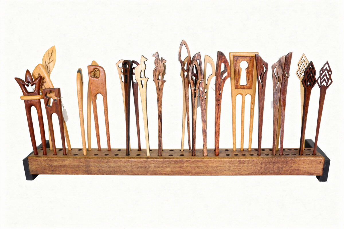 Peças de madeira artesanais para o cabelo, delicadas e únicas.